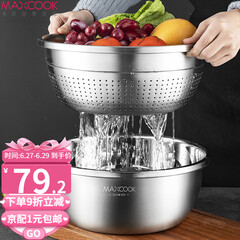 ¥88.00美厨(maxcook)304不锈钢盆筛套装 加厚加深宽边调料盆洗菜和面汤盆 沥水米筛 【2件套】30cm盆+30cm筛