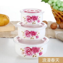 ¥50.00梦绾 陶瓷保鲜碗便当盒微波炉专用饭盒冰箱保鲜盒密封碗带盖大号 【图案随机】【三件套】 1套