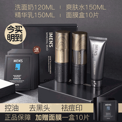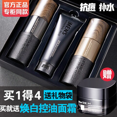 ¥119.90洁芙泉矿物泥男士套装控油补水保湿礼盒敏感肌【洗面奶+水+乳+面膜】