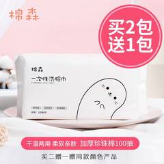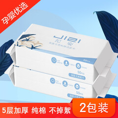 ¥12.00【春上新】纪姿一次性全棉抽取式洗脸巾卸妆棉化妆棉家庭装 2包100抽(20*15cm)