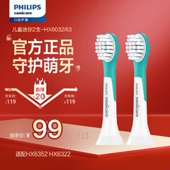 ¥109.00飞利浦电动牙刷头 儿童迷你型 2支装 HX6032/35 适配HX6322 HX6352(新包装6032/63随机发货)