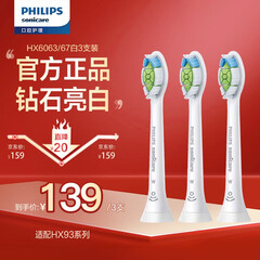 ¥159.00飞利浦(PHILIPS) 电动牙刷头 钻石亮白 3支装 适配HX9352/9372/6874 钻石亮白-3支装-迷你型-HX6073/67