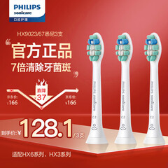 ¥128.10飞利浦(PHILIPS)电动牙刷头 7倍去除牙菌斑 牙菌斑洁净型 3支装HX9023 适配HX6系列HX3系列