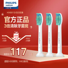 ¥121.00飞利浦电动牙刷头 基础洁净 3倍清除牙菌斑 杜邦刷毛 3支装HX6013 适配HX6系列HX3系列