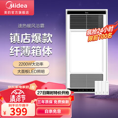 ¥399.00京东京造大功率风暖浴霸排气扇照明一体 集成吊顶双电机 浴室 超薄数显款