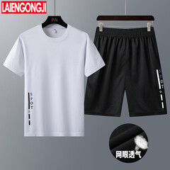¥169.00莱恩公鸡休闲短袖套装男夏季新款网眼透气时尚运动T恤短裤两件套 男YXC2013白色 3XL(约145-160斤)