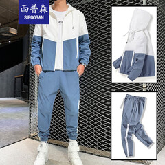¥99.00西普森休闲春装套装男新品日版潮流上衣反光一套搭配帅气衣服运动服男 803白蓝色 L
