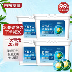 ¥99.00京东京造洗衣凝珠六效合一208颗(52颗*4) 10倍洁净 99%除菌除螨 洗衣凝珠