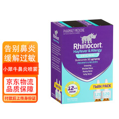 ¥228.00【香港直邮】 Rhinocort澳洲小犀牛鼻炎喷雾剂 布地奈德鼻喷 缓解花粉过敏鼻敏感打喷嚏鼻塞 鼻炎喷雾剂32μg 120喷*2支/套