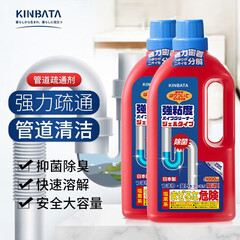 ¥69.90kinbata日本管道疏通剂疏通厨房下水道马桶管道通地漏毛发堵塞清洁疏通液 2瓶装*1000ML