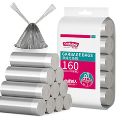 ¥17.90尚岛宜家 抽绳手提式垃圾袋加厚 自动收口大垃圾袋 家用办公分类垃圾桶袋 160只装