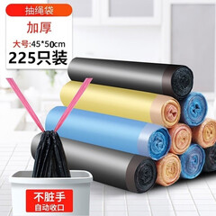 ¥59.00妙晨 抽绳自动收口垃圾袋加厚手提式 45cm*50cm大容量垃圾桶袋清洁纸篓塑料袋 手提式垃圾袋15卷225只装