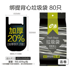¥14.90e洁垃圾袋手提式一次性绑提袋塑料袋厨房家用 加加厚背心袋 45x59cm 4卷共80只