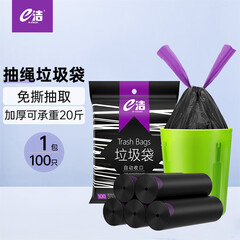 ¥27.80e洁自动收口垃圾袋抽绳加厚黑色家用手提式穿绳免撕式 50*55cm*100只
