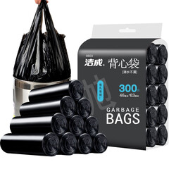 ¥21.90洁成 垃圾袋加厚家用手提大号背心式黑色塑料袋 手提式黑色46*63cm*300只