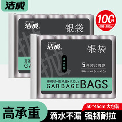 ¥19.90洁成加厚垃圾袋厚实耐用银袋厨房卫生间专用抗刺穿45*50cm*5卷 45*50cm*10只*10卷【特厚双面2.4丝】