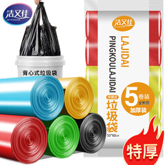 ¥9.90洁又佳【100只】手提垃圾袋加厚背心式家用厨房定制黑色拉极塑料袋 50*60cm 彩色 5卷(100只)