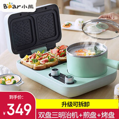 小熊(Bear) 轻食三明治机早餐机双盘定时多功能四合一 家用小型烤面包片机吐司机一体机 【可拆卸】煮锅+煎盘+双烤盘DSL-C10M1