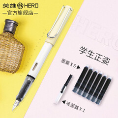 ¥25.00英雄(HERO)钢笔正姿学生练字男女铱金钢笔359A墨水笔EF尖(含6支墨囊) 黄色
