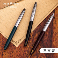 ¥52.00英雄(HERO)钢笔 经典复古色日常书写铱金钢笔 学生文具练字墨水笔 【三支装】 【329-2】银色帽F尖
