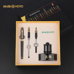 ¥218.00英雄(HERO)钢笔大鹏展翅套装(铱金笔+美工项+宝珠项)商务办公礼品墨水笔三合一1078 黑色