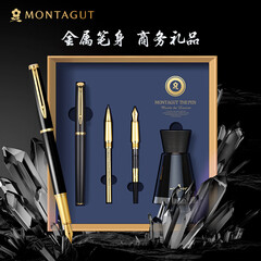 ¥107.10梦特娇(MONTAGUT)钢笔/签字笔/美工笔三合一练字笔办公父亲节礼物礼品墨水礼盒套装睿智系列2007-1 黑丽雅