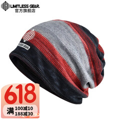 ¥32.00LIMITLESS GEAR 保暖帽子冬季套头帽男女多功能加厚加绒针织帽时尚防风保暖套装 红/灰条纹【抓绒多用途款911】