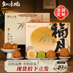 ¥62.37知味观中华老字号中秋月饼礼盒流心奶黄蛋黄莲蓉豆沙广式团购定制送礼品 尝鲜款清风福月礼盒