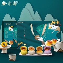 ¥89.90拉米娜A高档月饼礼盒苏式雪芝奶黄流心 广式椰蓉豆沙莲蓉牛肉 中秋送礼 秋忆(冰皮月饼)12枚636g