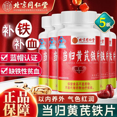 ¥215.70北京同仁堂 补血 补铁 当归黄芪铁片 当归片 女人成人改善贫血营养品 搭铁剂补血口服液补血调理 【0.6g*60片/瓶】*5瓶
