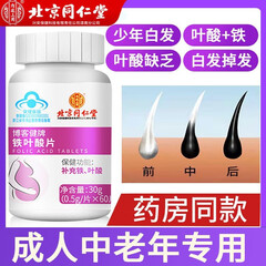 ¥109.90北京同仁堂铁叶酸片60粒白发维生素女男士通用 铁叶酸片维生素孕期营养品 2瓶装 铁+叶酸 | 同补