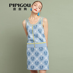 皮皮狗 夏季新品 卡通动物提花针织女背心桑蚕丝针织无袖吊带背心 502浅雾蓝 L/105