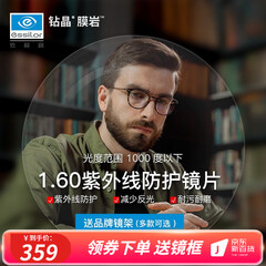¥519.00依视路(ESSILOR)【买镜片送镜框】1.60非球面钻晶A3升级钻晶膜岩轻薄近视镜片