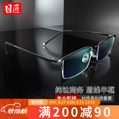 ¥269.00目匠 纯钛近视眼镜半框眉框男款防辐射方框电脑手机护目 5148 黑色 防蓝光配镜(1.61防蓝光镜片)