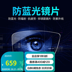 ¥659.00派丽蒙(PARIM) 多屏切片防蓝光镜片非球面近视防紫外线辐射护目2片定制有度数 1.74折射率防蓝光建议700以上