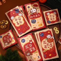 ¥29.90新年红包利是封2024龙年新款彩金磨砂立体万元红包袋过年压岁红包 6个【款式随机】