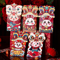 ¥19.80乾仓 红包2023兔年烫金利是封创意卡通可爱生肖国潮春节新年压岁包加厚大号个性千元儿童孩子红包袋 醒狮兔【4个混装】