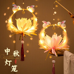 ¥19.90千棵树2023新款古风中秋灯笼儿童diy手工制作材料包手提小兔子宫灯花灯 海棠花灯-黄色(任发一个) 大