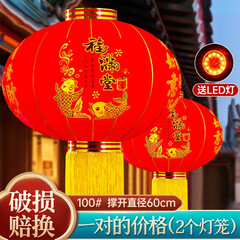 ¥68.00梦多福【两个装】梦多福 灯笼 春节新年装饰灯阳台大红大门2023植绒布 100#全家福+LED灯【一对装】 短杆(撑开直径60cm)