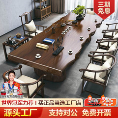 ¥1218.00神匠宋福实木大板茶桌椅组合新中式简约茶台客厅家用茶几办公室禅意泡茶桌 1.6米茶桌1围椅4月牙椅 石盘款
