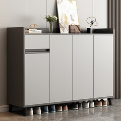 ¥229.00悦美妙 鞋柜门口收纳简约玄关柜家用客厅多层实木腿储物柜入户大容量简易架子 推荐【四门一抽】欧文莱灰色120*32*100C