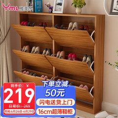 ¥269.00雅美乐鞋柜门口超薄翻斗简约六门大容量多层储物收纳入户玄关鞋柜梨木色