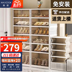 ¥199.00MAXCOOK美厨 鞋柜 免安装可折叠收纳鞋盒简易门口入户玄关防尘除臭超薄鞋柜大容量透明亚克力鞋架柜 象牙白-6双装/1列6层