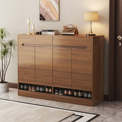 ¥299.00人文成家鞋柜家用入户门玄关柜多功能大容量储物柜简约多层收纳一体鞋柜 【四门两抽】120cm郁金檀木色