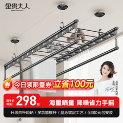 ¥418.00金贵夫人 升降晾衣架阳台手摇晾衣杆四杆室内折叠晒衣架凉衣架 幻夜黑 2.4米四杆 不带衣架+15根横杆