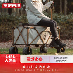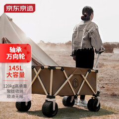 ¥499.00京东京造 户外露营车 越野版可折叠145L大容量加宽车轮营地野餐推车原木棕