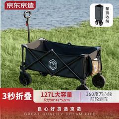 ¥279.00京东京造 户外露营车 可折叠 127L大容量120KG承重 营地野餐推车 石墨黑