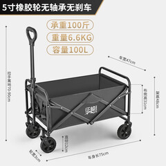 ¥198.00物也奇语 户外营地车便携式露营推车大容量折叠野餐车野营车拖车露营装备 升级款5寸橡胶轮(黑色)