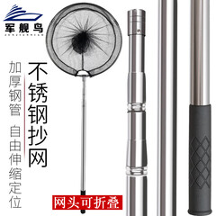 军舰鸟 抄网折叠捞鱼网兜钓鱼竿网头不锈钢抄网伸缩抄鱼网兜渔具 1.8米(含40厘米网头)