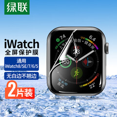 ¥25.80绿联苹果手表膜S8/SE2通用Apple iWatch7/6/5/4保护膜45/44mm全屏防刮防指纹水凝软膜2片装